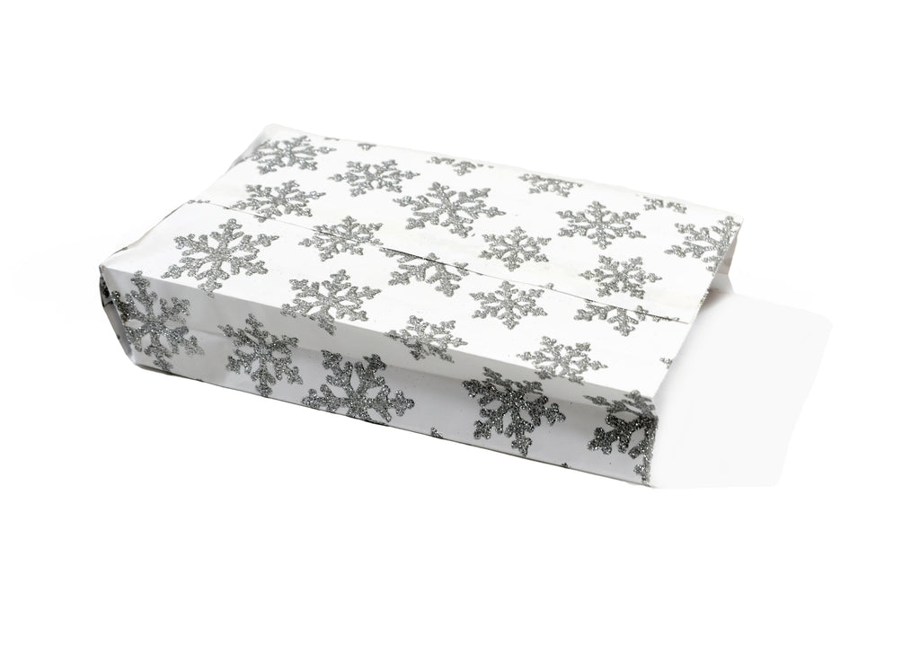 Eco-friendly bags in plain white glitter printed paper .